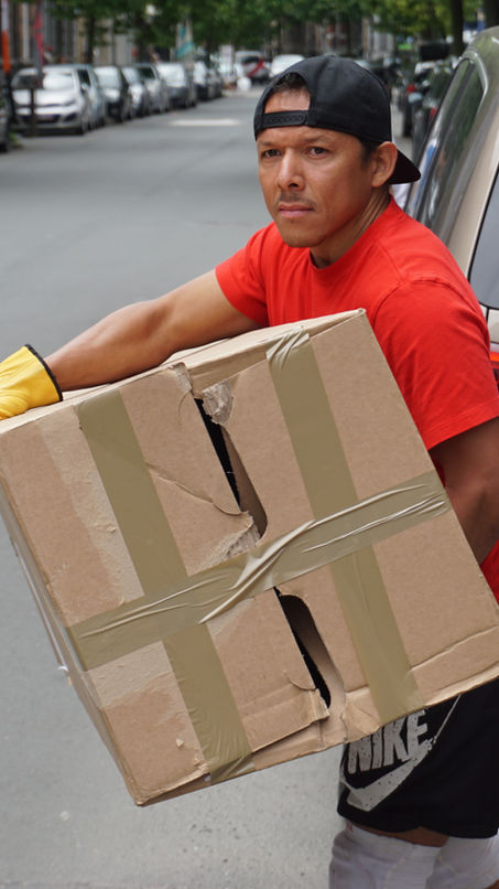 collusiion est une performance en deux temps, intérieur et espace public, avec trois (vrais) livreurs, deux (vrai·es) acteur·ices, et un (vrai) cascadeur.